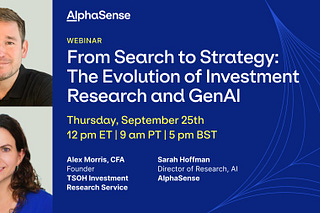 On Thursday, September 25th, I’ll be hosting a live webinar with Sarah Hoffman, Director of AI Research at AlphaSense, to discuss how AI is reshaping…