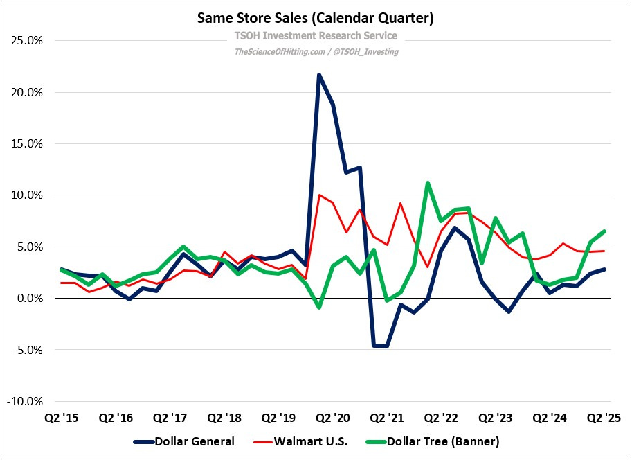 For one, the company reported strong net revenue (+12.3%) and same store sales (SSS) growth (+6.5%), with the latter attributable to a roughly equal contribution from traffic and ticket. By category, the quarter included a strong showing in Consumables (+6.7%) and Discretionary (+6.1%), reflecting Dollar Tree’s broad value appeal once shoppers are inside the store (it was their best Discretionary comp in two and a half years). As a result of a solid 1H FY25, management also raised the company’s full year SSS and revenue guidance. This is further evidence that Dollar Tree’s strategic changes are enhancing the product offering - and customers are responding accordingly.