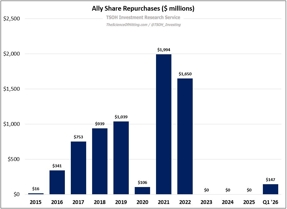“Given some of the decisions made in the past year, along with an improving trajectory in credit, I am optimistic about what lies ahead for Ally. As it relates to the current attractiveness of the stock, note that CFO Russ Hutchinson has bought ~$1 million on the open market in recent months [he added another ~$500k in January 2026]… If the deposit gathering franchise meets my long-term expectations, along with sound credit underwriting and meaningful capital returns (particularly if the shares trade, on average, at less than 10x forward earnings), I think the stock will generate attractive returns over time.”