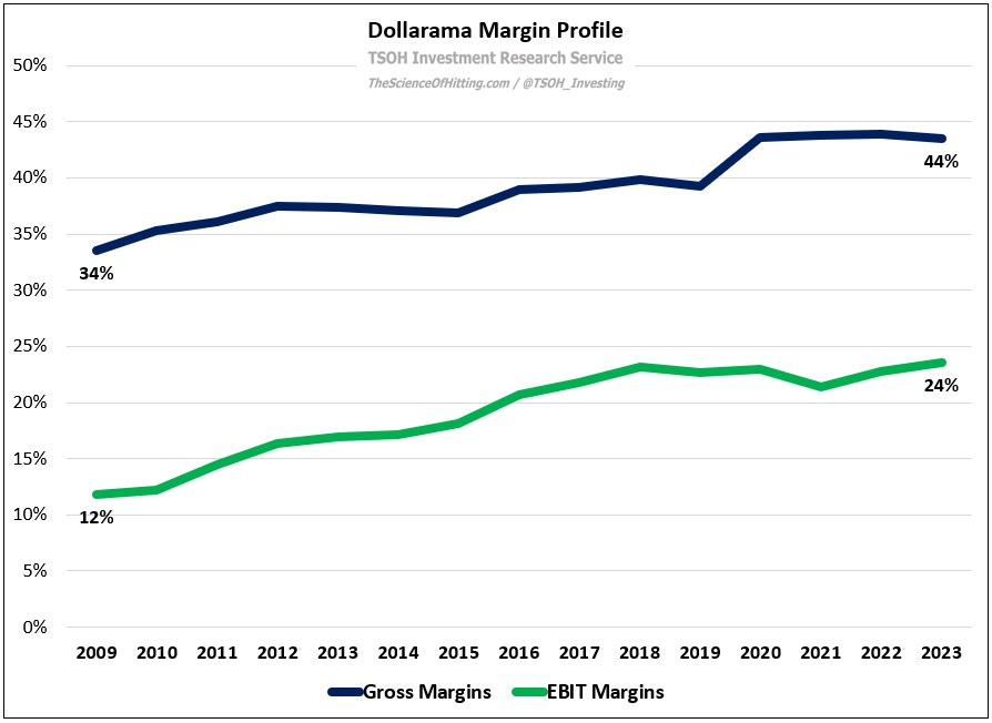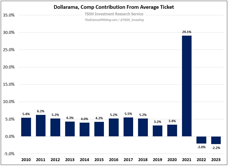 As disclosed in the 10-K, the +9% comp reflects a 13% increase in average ticket, offset by a 4% decline in traffic (the number of transactions). That strikes me as a reasonable / acceptable outcome, particularly when you consider the bottom line impact: as shown below, banner EBIT margins in 2022 were 16.5% - up >400 basis points from the 2019 – 2021 average.