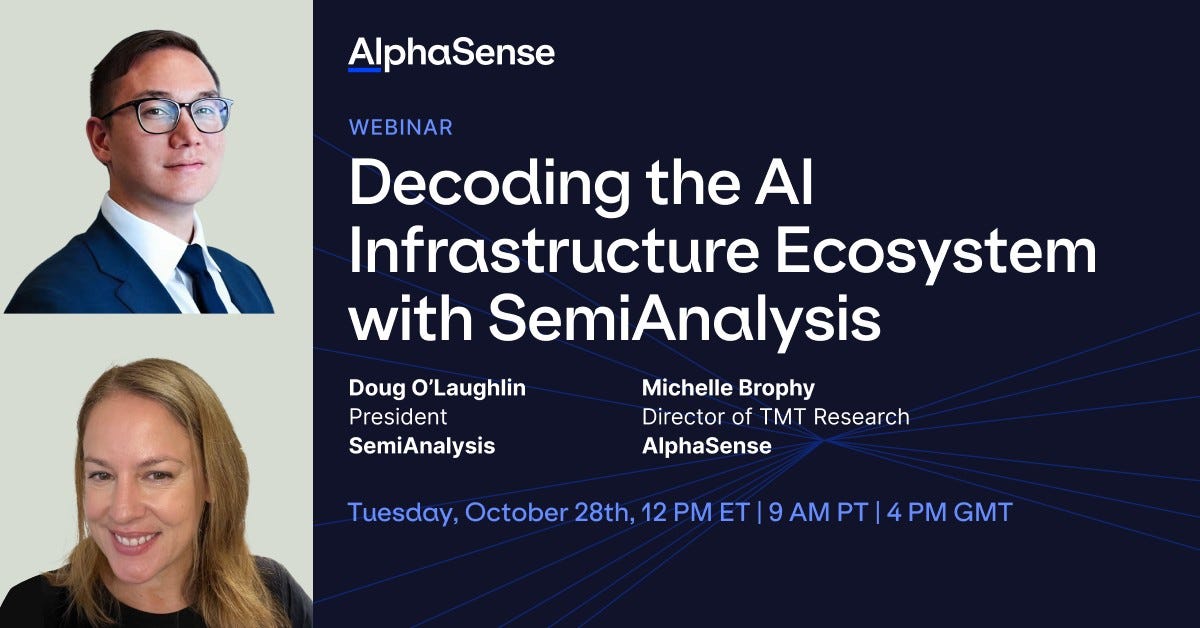 Note: Tomorrow afternoon, AlphaSense is hosting a webinar with Doug O’Laughlin of SemiAnalysis to discuss the AI infrastructure boom. Doug shared his insights in a similar discussion a few months ago, which was informative and thought-provoking. If you’d like to attend, sign-up here.