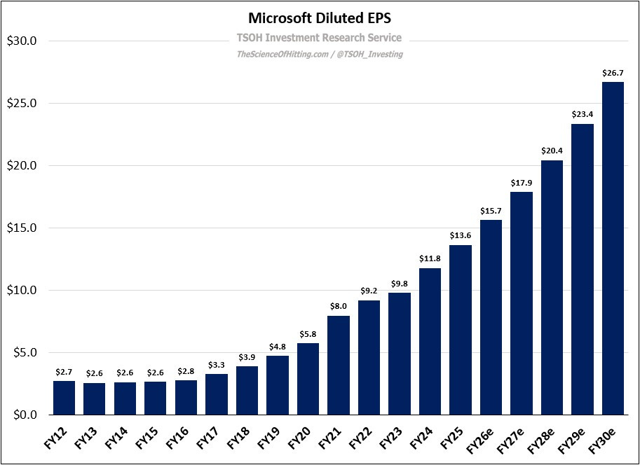 In the context of being a long-term owner of Microsoft, it’s instructive to consider the thought exercise from “It’s Always About The People”: “In a different scenario, where 68-year old Alan Mulally took charge at Microsoft, how would this have played out? Would he have shared Nadella’s conviction and willingness to accept material P&L pressure through the mid-2010’s that ultimately led to the astounding revenue and EPS growth in recent years?”