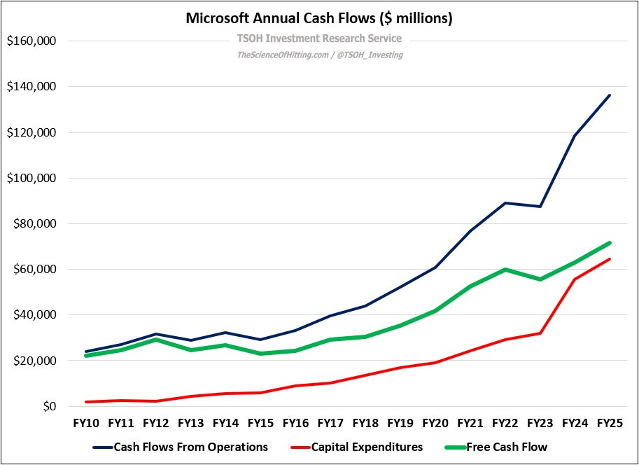 Operating income has increased by ~143% over the past five years, with the CapEx ramp resulting in about half as much FCF growth over the same period (up ~72% to ~$72 billion in FY25). Management believes that this is a truly transformational moment for the company, the tech industry, and the world broadly, and its CapEx intensity reflects that view. To paraphrase Nadella, Microsoft is moving with the intentionality and intensity required to deliver strong near term financial results while also making the massive investments that will be table stakes to lead this next era, and which only a handful of companies can keep up with. This sentiment was well captured by Nadella, who said the following on the Q4 call: “We will continue to make investments with decade-long arcs, while making progress every quarter.”